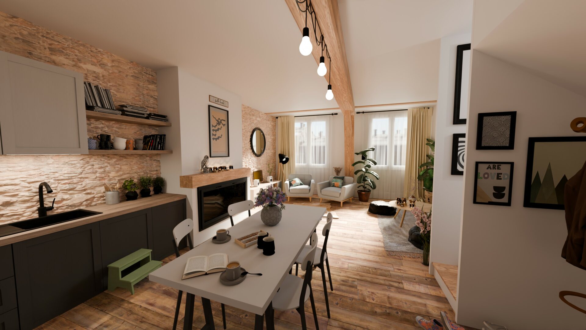 Dans le cadre d’un projet de rénovation d’appartements à Vannes, j’ai réalisé trois vues d’aménagement intérieur en 3D pré-calculée à partir des plans architecturaux. Ces visualisations ont été conçues afin de permettre aux futurs acquéreurs de se projeter dans les volumes et les ambiances des logements après travaux.